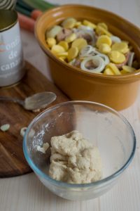Sprinkle with white wineMix the flour in a bowl with enough cold water to make a soft paste. Environ une heure avant que le Baeckeoffe ne soit déposé dans le moule ajoutez un verre de vin à la viande mélangez bien le tout et laissez infuser.